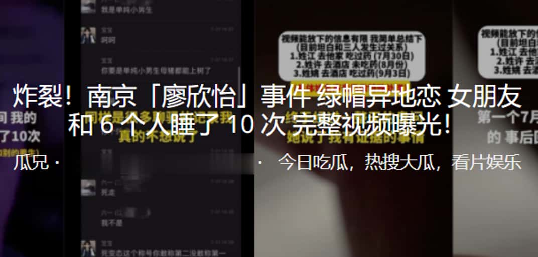 炸裂!南京「廖欣怡」事件绿帽异地恋女朋友和 6 个人睡了 10 次 完整视频曝光!