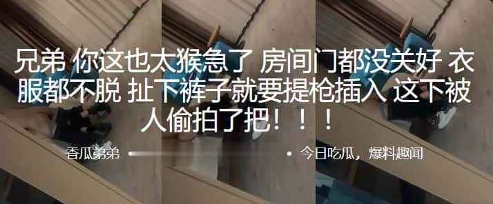 兄弟~你这也太猴急了,房间门都没关好,衣服都不脱,扯下裤子就要提枪插入,这下被人偷拍了把!!!