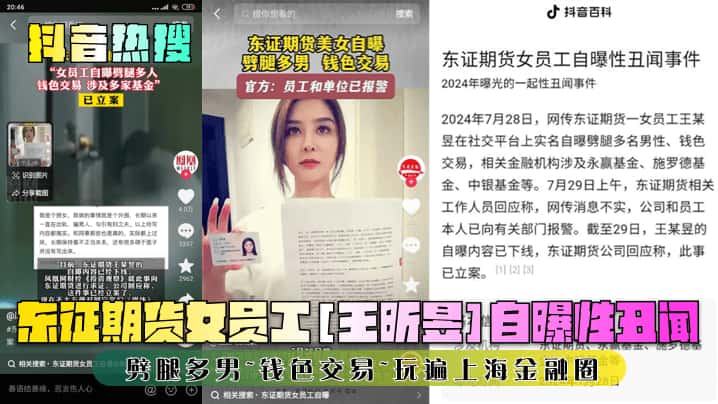 【抖音热搜】东证期货女员工[王昕昱]自曝性丑闻!劈腿多男~钱色交易~玩遍上海金融圈!
