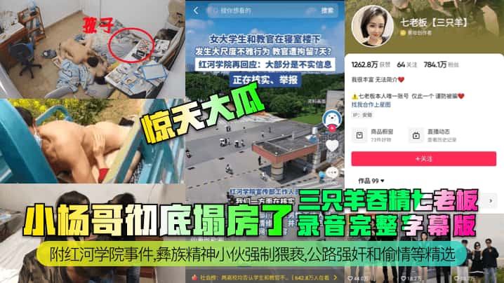 【惊天大瓜】小杨哥彻底塌房了!三只羊吞精齐老板录音完整字幕版!附红河学院事件,彝族精神小伙强制猥亵,公路强奸和偷情等精选!