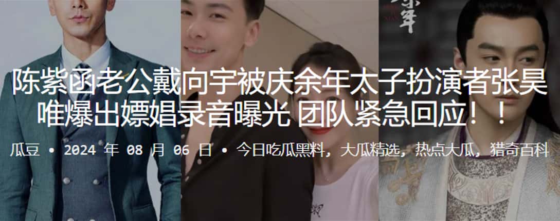 陈紫函老公戴向宇被庆余年太子扮演者张昊唯爆出嫖娼录音曝光,团队紧急回应!!