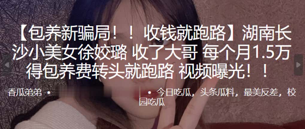 湖南长沙小美女“徐姣璐”收了大哥每个月1.5万得包养费转头就跑路 视频曝光!!