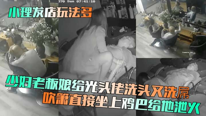 【小理发店玩法多】少妇老板娘给光头佬洗头又洗屌!吹箫直接坐上鸡巴给他泄火!