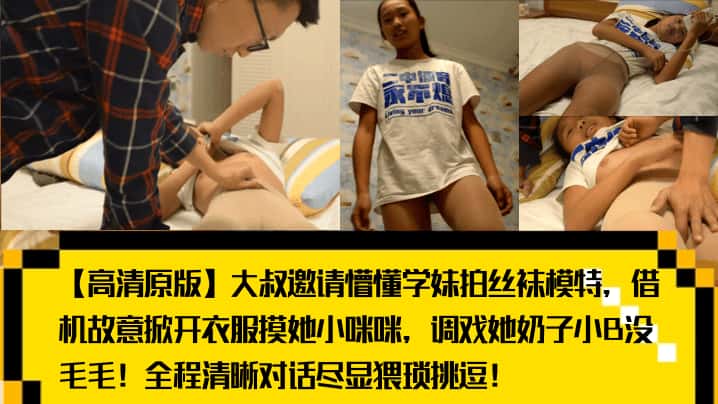 【高清原版】大叔邀请懵懂学妹拍丝袜模特,借机故意掀开衣服摸她小咪咪,调戏她奶子小B没毛毛!全程清晰对话尽显猥琐挑逗!