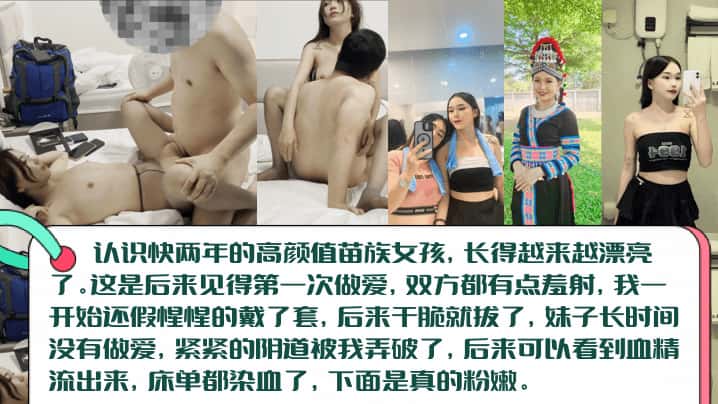 【血染床单】高颜值长腿苗族女孩c见篇,白虎一线天被无套内射!阴道被插破,血精流出来染红床单!