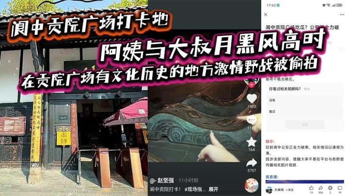 阆中贡院广场打卡地,阿姨与大叔月黑风高时,在贡院广场有文化历史的地方激情野战被偷拍,这是属于老一辈激情燃烧的岁月吗?