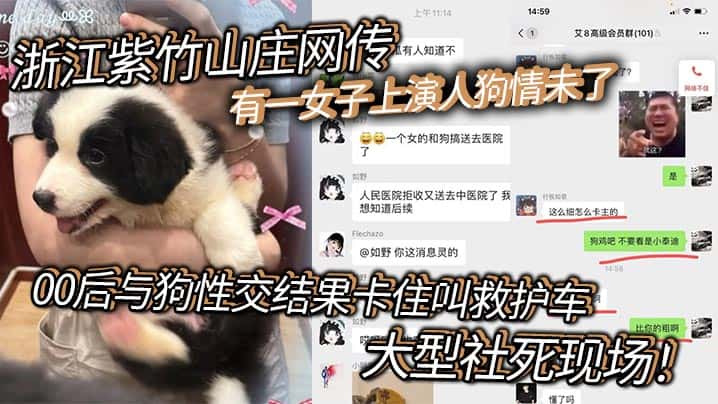 浙江紫竹山庄网传有一女子上演人狗情u了,00后与狗性交结果卡住叫救护车,大型社死现场!