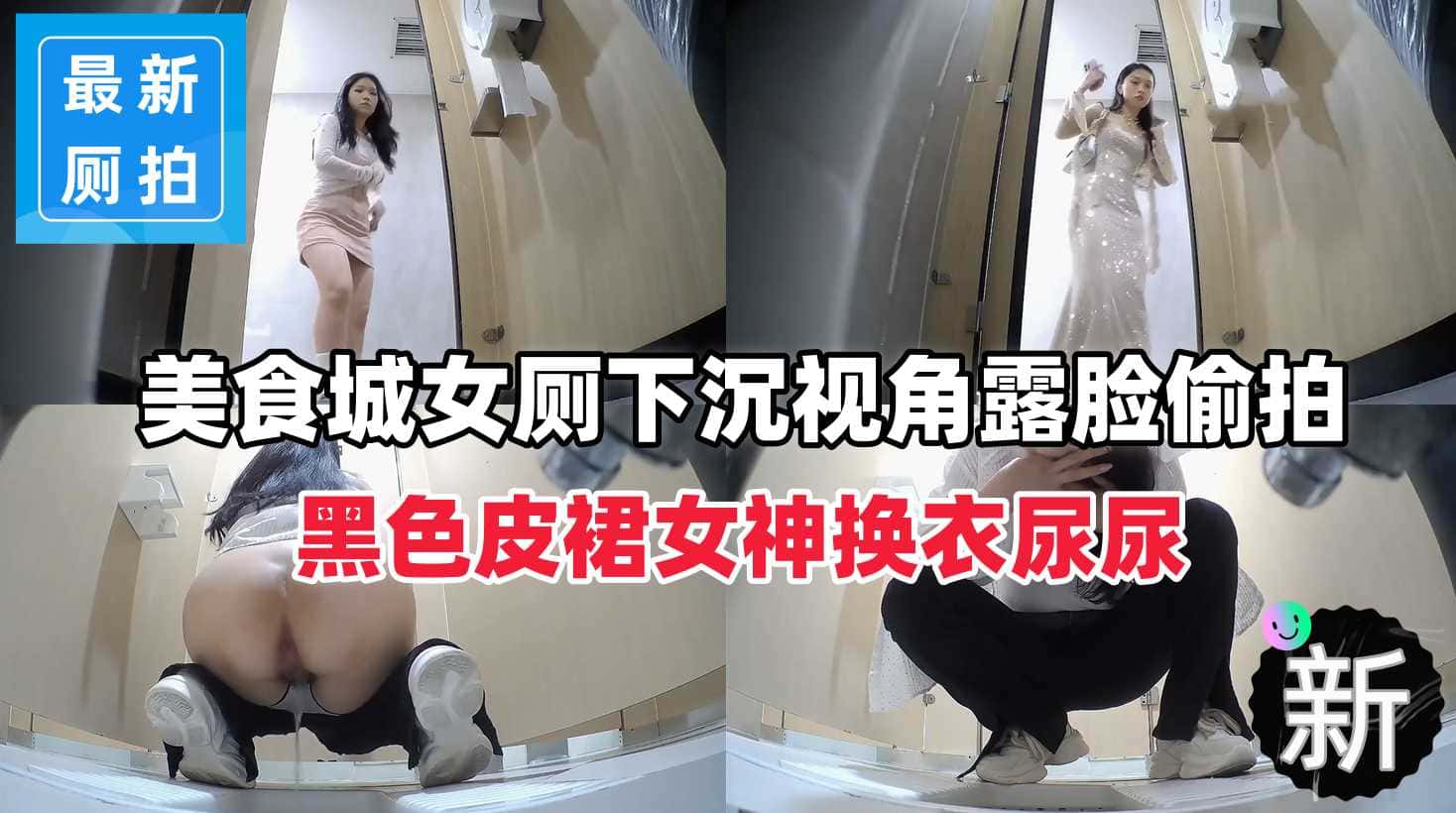 【超顶厕拍】下沉视角露脸偷拍黑色皮裙女神换衣尿尿