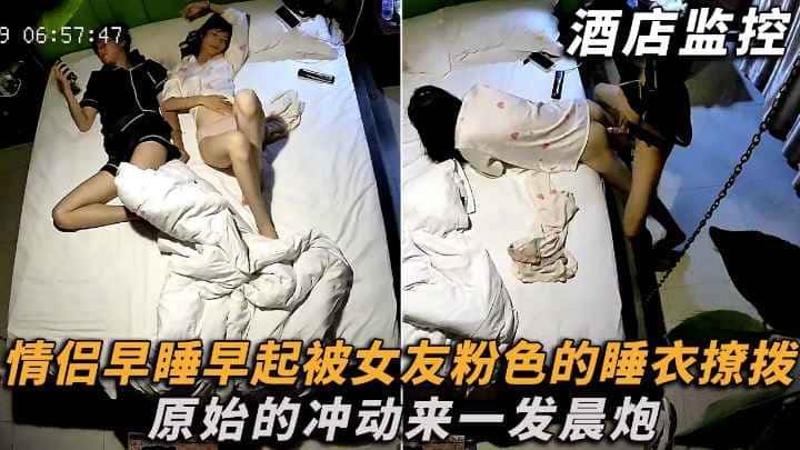白天玩累的情侣早睡早起被女友粉色睡衣撩拨着原始的冲动