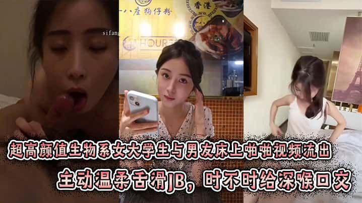 超高颜值生物系女大学生与男友床上啪啪视频流出。主动温柔舌滑JB,时不时给深喉口交。趴身上来主动插入小穴,表情闭眼享受刺激感