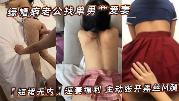 绿帽癖老公找单男艹爱妻 模特身材极品娇妻『短裙无内』淫妻福利 ,主动张开黑丝M腿