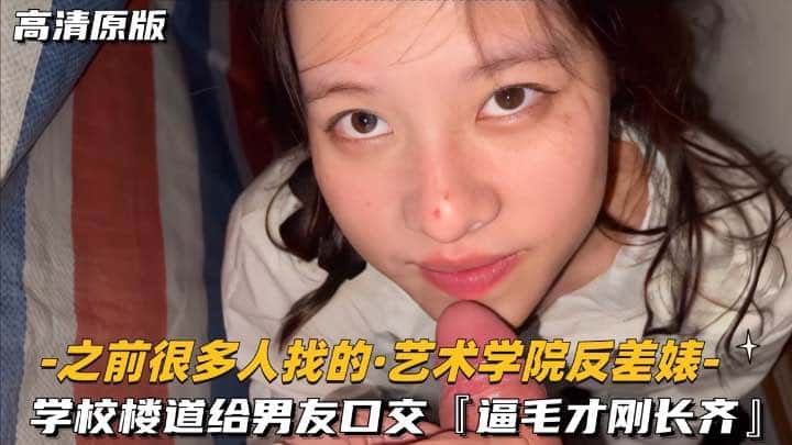 【之前很多人找的-艺术学院反差婊】学校楼道给男友口交,逼毛才刚长齐