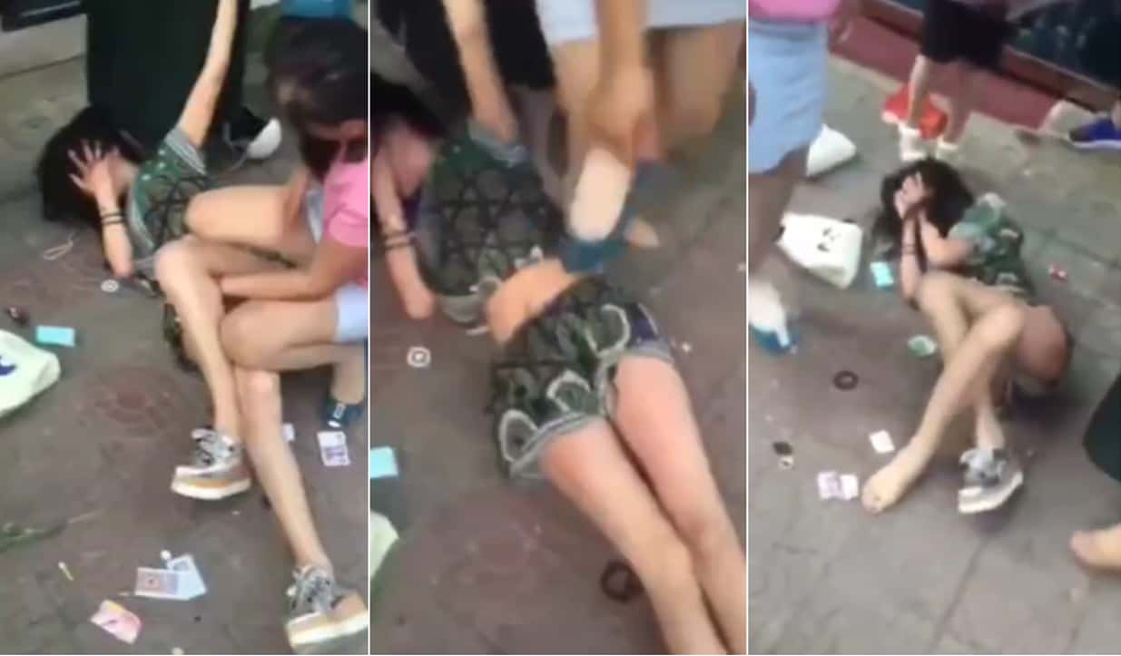 原配当街暴打小三