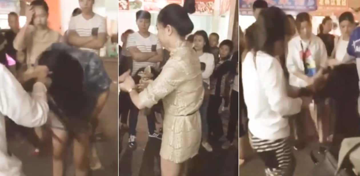 一群娘们当街互殴