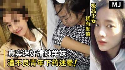真实迷奸!超清纯学生嫩妹遭不良青年下药迷晕拖至宾馆强行玩弄