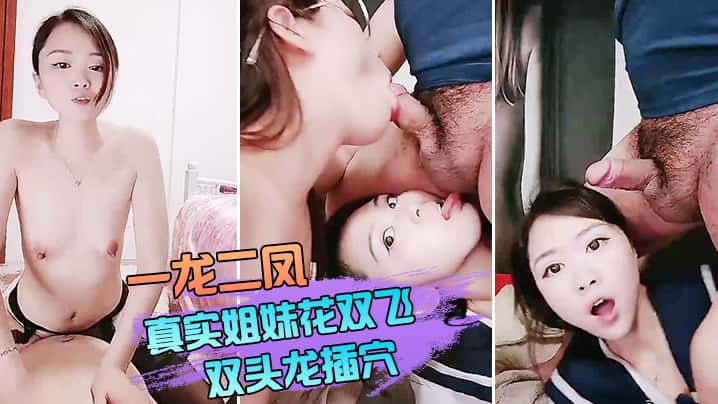 【一龙二凤】真实姐妹花双飞,双头龙插穴,双女舔蛋口交,特写猛操骚穴流出白浆