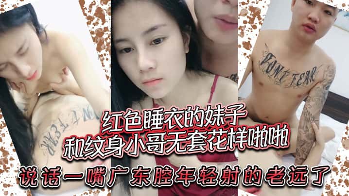 红色睡衣的妹子和纹身小哥无套花样啪啪,说话一嘴广东腔,年轻射的老远了